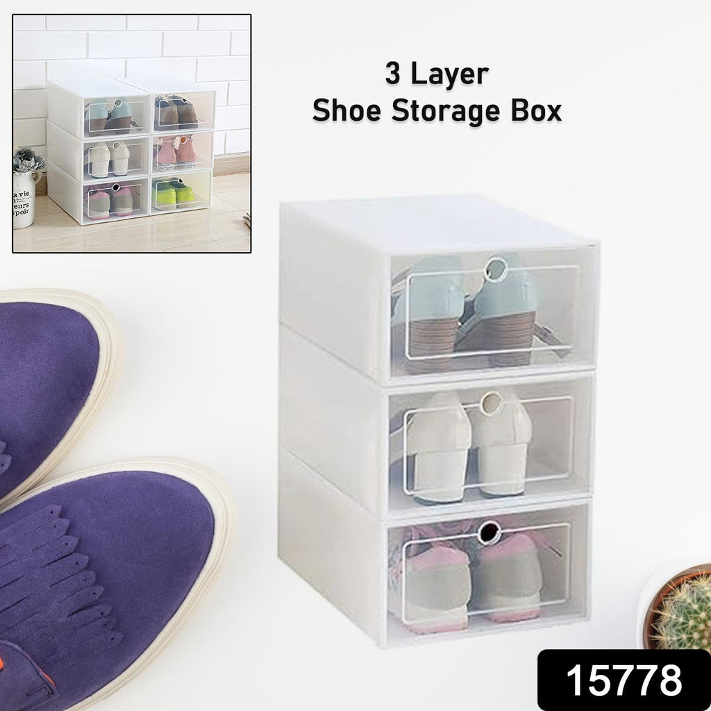 3 Layer Transparent Shoes Storage Box Plastic Stackable Shoe Storage, Multifunctional Shoe Box, Universal Shoe Storage Boxes for Men and Women Shoe Plastic Boxes Stackable Box Organizer Rack (1 Set / 3 Layer)